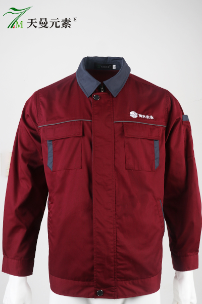目前,工作服已經(jīng)進入尾部工作,開始在打包了,我們拿一件樣衣給大家展示下,這次采用棗紅色為主色調(diào),領(lǐng)口為深灰色,顯得沉穩(wěn)大氣,款式還是傳統(tǒng)的工裝款式,胸口是白色刺繡logo,相信員工穿上這款工作服會更加努力投入工作~