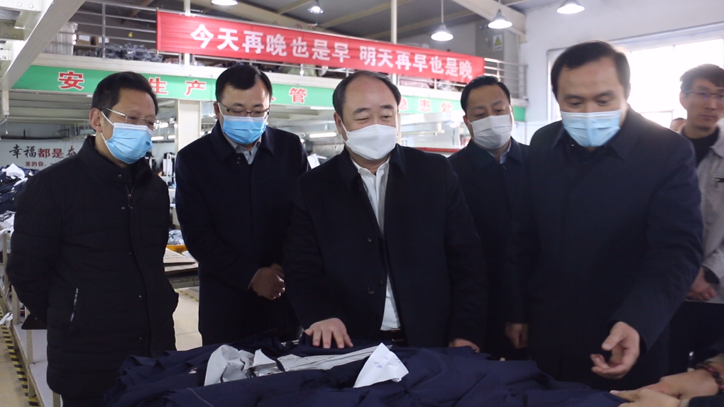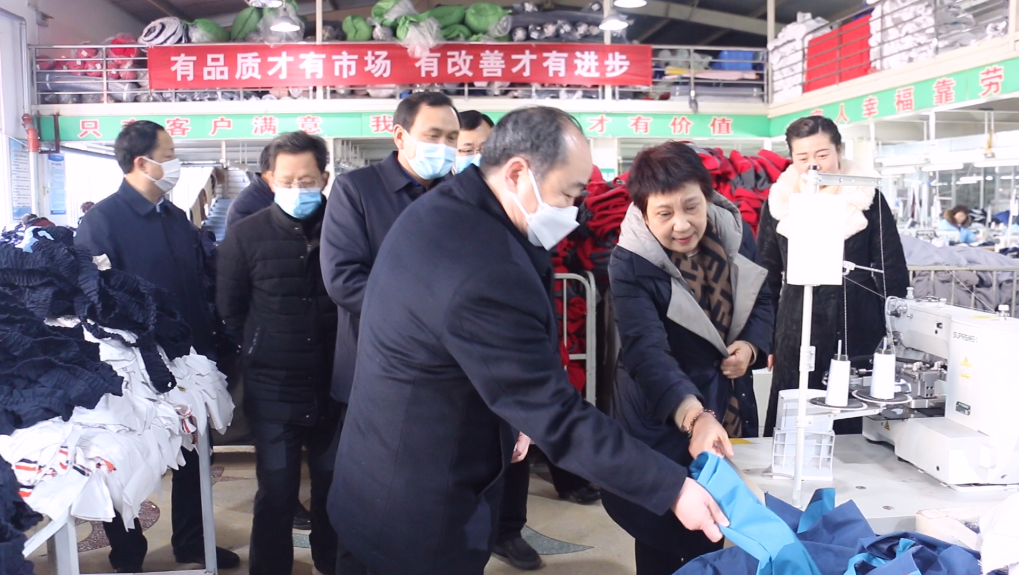 1月29日,河南天曼服飾開工第二天,縣委書記張智廣帶隊深入企業(yè)調(diào)研督導(dǎo)復(fù)工復(fù)產(chǎn)工作,縣委常委、宣傳部長、副縣長劉彥,縣委常委、縣委辦主任郭惠軒、縣委常委、統(tǒng)戰(zhàn)部長張國濤參加調(diào)研。