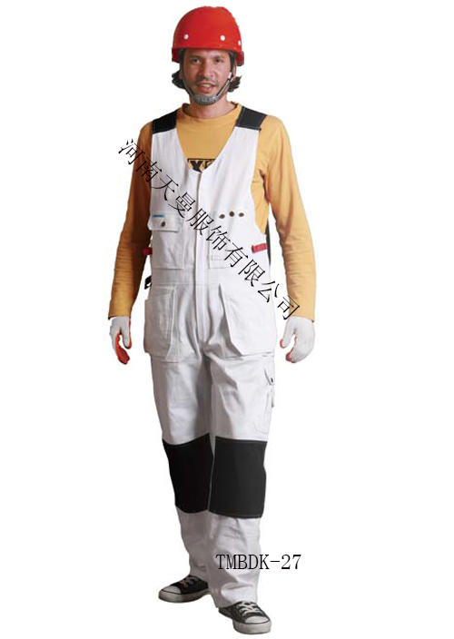 • 產品簡介:背帶褲 新款背帶褲 產品詳細描述 : 面料:純棉 10*10,72*40,260-270 gsm;兩個帶蓋胸兜;前門襟塑脂拉鏈, 兩個活動式前下兜,腿部工具兜,腰部可以調節松緊,膝蓋部位另加一層防護布料。