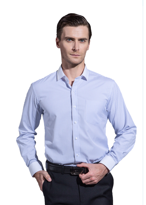 品名:男短袖小領(lǐng)襯衣;版型:普通版;貨號:TW6001 ;面料:T6001;顏色:藍豎條紋白領(lǐng)白袖口 ;Fabric:C60/T40/80/2S*45S