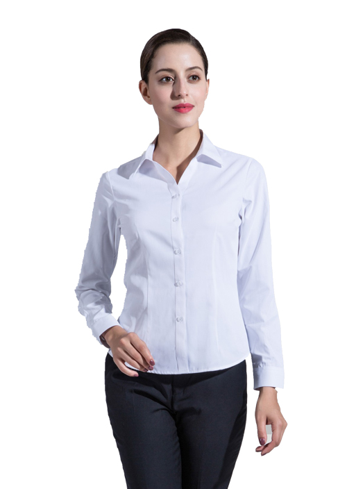品名:女長袖V領襯衣;版型:修身版;貨號:TWD3501 ;面料:T3501;顏色:純白細斜紋 ;Fabric:C35/T65/32S/2*32S/2